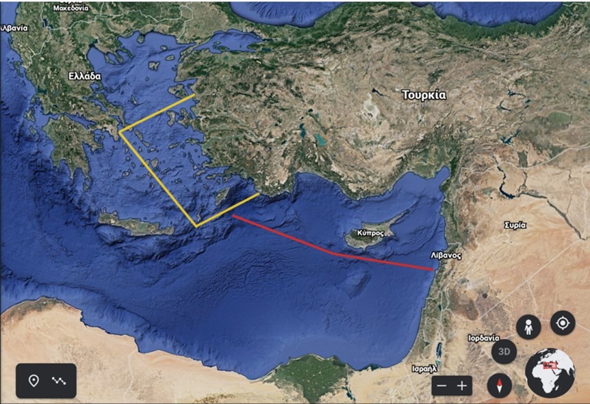 15 Σεπτεμβρίου: Κατάπλους στη Βηρυτό στη δεξιά πλευρά του συνοδού Κορινθία.