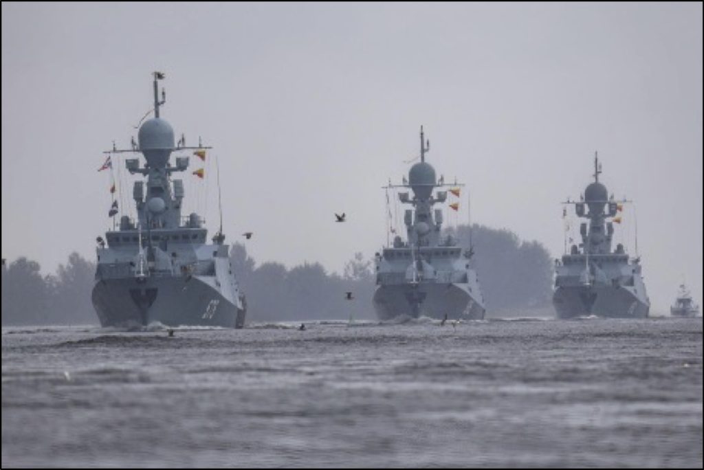 Από την πλευρά της, η Ρωσία στηρίζεται κυρίως στο Στόλο της Βαλτικής, με κεντρικές βάσεις στο Μπαλτίισκ (Καλίνινγκραντ) και το Κρονστάντ (Αγία Πετρούπολη), διαθέτοντας περίπου 60 πολεμικά σκάφη – κορβέτες κλάσης Steregushchiy και Buyan-M, περιπολικά σκάφη, αποβατικά μέσα κλάσης Ropucha, καθώς και συμβατικά υποβρύχια τύπου Kilo6Τα ρωσικά υποβρύχια τύπου Kilo (Project 877 Paltus και οι μεταγενέστερες εκδόσεις Project 636 και 636.3 Varshavyanka) αποτελούν τη ραχοκοκαλιά των μη πυρηνικών υποβρυχίων του ρωσικού ναυτικού και θεωρούνται από τα πιο αθόρυβα και αποτελεσματικά συμβατικά υποβρύχια παγκοσμίως. Έχουν εκτόπισμα περίπου 2.300–3.100 τόνους, μήκος 72–74 μέτρα και βύθισμα περίπου 6 μέτρα, ενώ κινούνται με σύστημα πρόωσης diesel-ηλεκτρικό, το οποίο προσφέρει υψηλή αξιοπιστία και χαμηλή ηχητική υπογραφή. Η ταχύτητά τους φτάνει τους 17–20 κόμβους υποβρυχίως, ενώ μπορούν να επιχειρούν σε βάθη έως 300 μέτρων και να διανύουν περίπου 6.000 ναυτικά μίλια με τη χρήση αναπνευστήρα. Η επιχειρησιακή τους ευελιξία τα καθιστά κατάλληλα για παράκτιες επιχειρήσεις, επιτήρηση, ανθυποβρυχιακές αποστολές, αποτροπή αποβατικών ενεργειών και επιθέσεις μεγάλης ακτίνας, ειδικά σε περιοχές όπως η Μαύρη Θάλασσα, η Βαλτική και ο Βόρειος Στόλος εξοπλισμένα με πυραύλους Kalibr. Ειδικά η δυνατότητα εκτόξευσης πυραύλων Kalibr από υποβρύχια Kilo έχει μετατρέψει αυτά τα σκάφη σε κρίσιμα εργαλεία για τη ρωσική στρατηγική πλήγματος, όπως φάνηκε σε επιχειρήσεις στη Συρία και στην Ουκρανία, όπου οι εκτοξεύσεις από τη Μαύρη Θάλασσα αποτέλεσαν επίδειξη δύναμης.