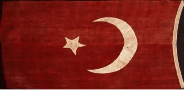 Σύμφωνα με τα αρχεία του Ναυτικού Μουσείου Ελλάδος, η παραπάνω σημαία δωρήθηκε στο μουσείο, το έτος 1959, από τη θυγατέρα του Ναυάρχου “Παύλου Κουντουριώτη”, “Δέσποινα Λαμπρινούδη”. Ήταν λάφυρο του πολέμου του 1897. Τη σημαία αφαίρεσε από τις τουρκικές αποθήκες της Σκάλας Λεπτοκαρυάς, άγημα του “ατμοδρόμωνος Αλφειού”, κυβερνήτης του οποίου ήταν ο Πλωτάρχης (τότε) “Παύλος Κουντουριώτης”.