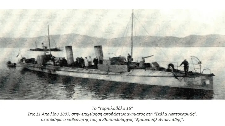 Πρέπει να τονίσουμε, πως από την καταδρομική ενέργεια, η οποία έγινε τον Απρίλιο του 1897, στη “Σκάλα Λεπτοκαρυάς” και όπου σκοτώθηκε ο ανθυποπλοίαρχος Εμμ. Αντωνιάδης, μας έχει διασωθεί μία τουρκική σημαία, που πάρθηκε ως λάφυρο και βρίσκεται στο Ναυτικό μουσείο της Ελλάδας,