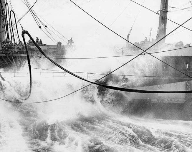 Ο ανεφοδιασμός ξεκίνησε στις 10 το πρωί, αλλά αμέσως αντιμετωπίστηκαν σοβαρά προβλήματα. Άνεμος 20-30 κόμβων και εγκάρσιος κυματισμός έκαναν τη διαδικασία εξαιρετικά δύσκολη. Οι σωλήνες μεταφοράς καυσίμων αποσυνδέονταν ο ένας μετά τον άλλο σε πολλά πλοία, ενώ ορισμένα αντιτορπιλικά αντιμετώπιζαν προβλήματα πηδαλιούχησης κατά τη δύσκολη αυτή διαδικασία. Η ατμόσφαιρα στη ναυαρχίδα άρχισε να γεμίζει με ανησυχία.