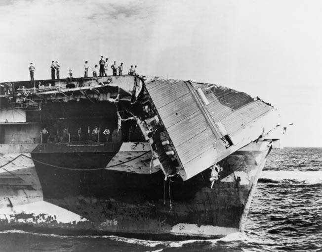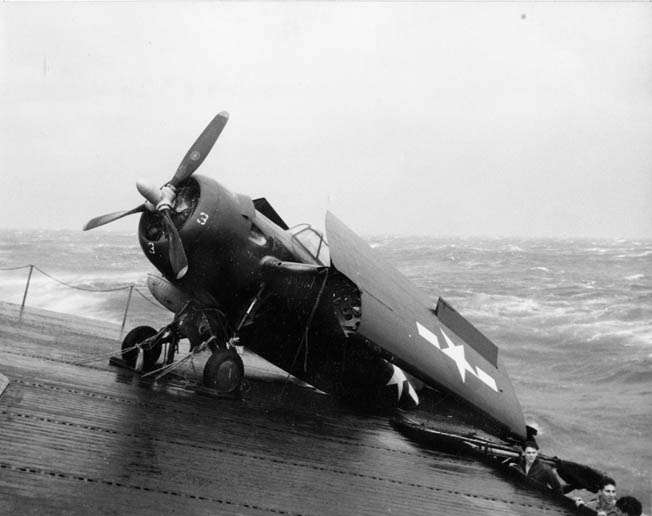 Ο στόλος, που βρισκόταν 180 μίλια βορειοανατολικά του Σαμάρ, δέχθηκε την πλήρη δύναμη της καταιγίδας. Ο άνεμος έφθασε τους 73 κόμβους και στη συνέχεια τους 83, με ριπές ως 93 κόμβους. Κύματα ύψους 20 μέτρων χτυπούσαν τα πλοία από κάθε κατεύθυνση. Τα αεροπλανοφόρα κυλούσαν σφοδρά· αεροσκάφη παρασύρθηκαν από τα καταστρώματα πτήσης, άλλα ξέφυγαν από τα δεσίματά τους στα ενδιάμεσα καταστρώματα, συγκρούστηκαν με τα διαφράγματα και άναψαν φωτιές που ήταν σχεδόν αδύνατο να σβηστούν. Συνολικά 146 αεροσκάφη χάθηκαν. Δεκαεννέα υδροπλάνα εκτοξεύτηκαν από θωρηκτά και καταδρομικά.