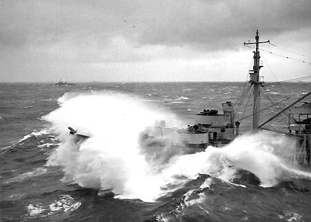 Τα μικρότερα πλοία υπέφεραν ασύγκριτα περισσότερο. Τα αντιτορπιλικά, με τις δεξαμενές τους σχεδόν άδειες από καύσιμα, επέπλεαν ψηλά και ήταν εντελώς εκτεθειμένα στα κύματα. Ορισμένα έγειραν τόσο πολύ ώστε οι καμινάδες τους ήταν σχεδόν οριζόντιες. Νερό εισέβαλε στους αεραγωγούς, βραχυκυκλώνοντας τα ηλεκτρικά συστήματα και αφήνοντάς τα ακυβέρνητα να παρασύρονται στο έλεος της καταιγίδας. Τρία από αυτά — τα Hull, Spence και Monaghan — δεν άντεξαν. Ανατράπηκαν και βυθίστηκαν με σχεδόν όλα τα πληρώματά τους.