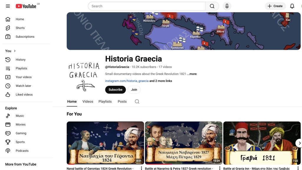 Τι κανάλι "Ηistoria Graecia" στο YouTube