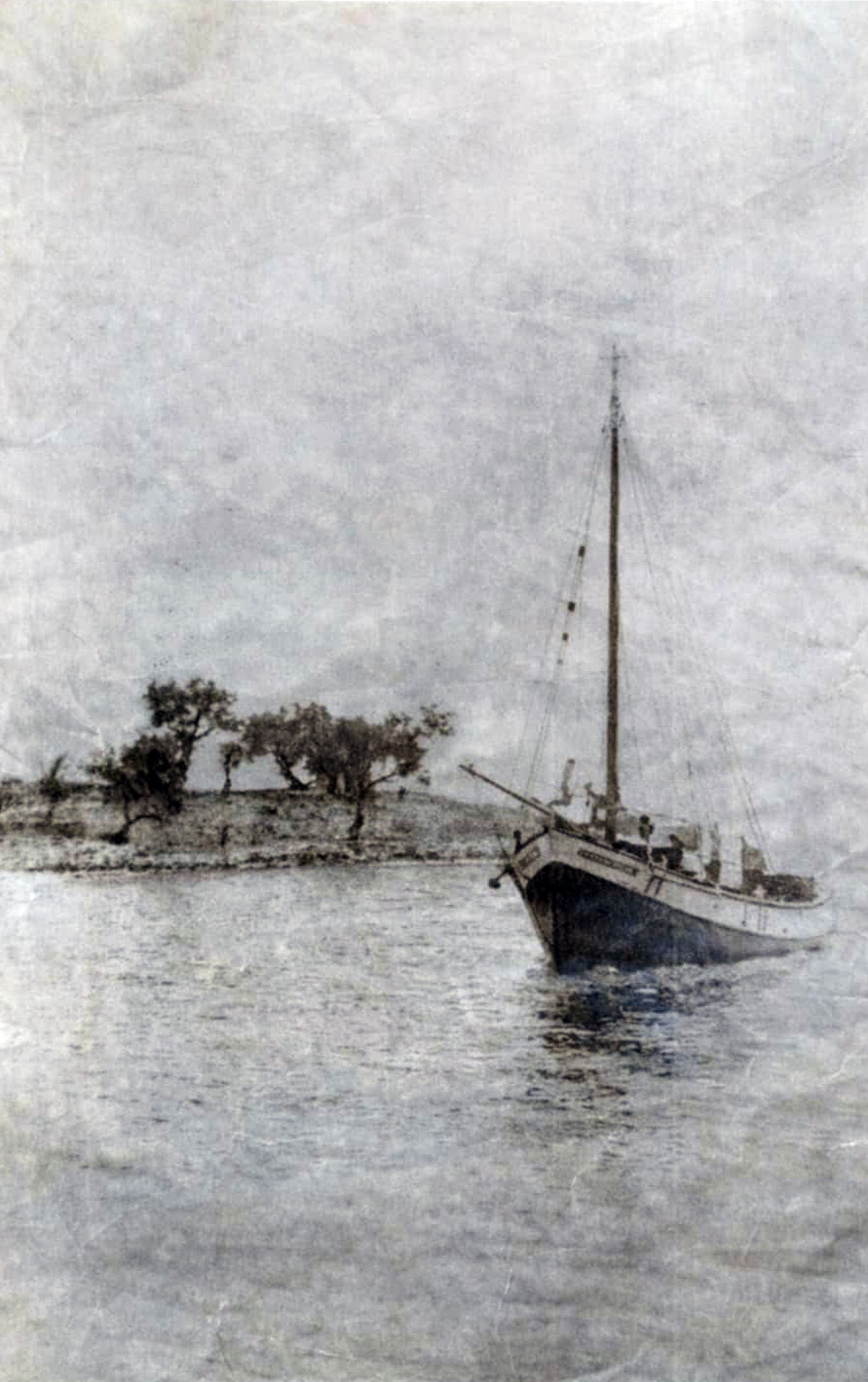 Επιτέλους φάνηκε το καΐκι που ερχόταν από την Κέρκυρα. Είχε να πατήσει σκαρί στο νησί σχεδόν μια εβδομάδα. Νοέμβρης μήνας, βλέπεις, και ο αέρας λυσσομανούσε μέρες τώρα, κόβοντας κάθε επικοινωνία. Ήταν ένα όμορφο, ξύλινο σκαρί, με σκαρμούς* γερούς και πέτσωμα* καλογυαλισμένο, η «Ευτυχία». Με τα καΐκια έφταναν στους Παξούς όλα τα βασικά αγαθά: το αλεύρι, η ζάχαρη, τα όσπρια, τα σπετσερικά*, εργαλεία και τόσα άλλα. Με αυτά ταξίδευαν για να δουν γιατρό, για χαρτιά στις δημόσιες υπηρεσίες, δικηγόρους, εμπόριο. Οι επιβάτες τους φαίνονταν από μακριά, εκτεθειμένοι στον ήλιο, στη βροχή και την αλμύρα. Το καΐκι έδεσε αργά, παλεύοντας με τα κύματα και το λιμάνι γέμισε ξαφνικά ζωή. Φάνηκαν τα πρώτα σακιά αλεύρι, κεφάλια τυρί, μια πλάκα ντόπιο βούτυρο, σαλάδο*, νούμπουλο* κι ένα μικρό κιβώτιο με σπετσερικά*, για το ιατρείο. Στην άκρη στοίβαξαν τα αδειανά βαρέλια από λάδι και τα κοφίνια από τις ελιές — τον «χρυσό» των Παξών — που γεμάτα είχαν πάει να πουληθούν στην Κέρκυρα. Σφιχτά δεμένα με σκοινί, τυλιγμένα προστατευτικά μέσα σε μια νάιλον σακούλα, ήταν τα γράμματα. Αυτά περίμενε η Μαρί.