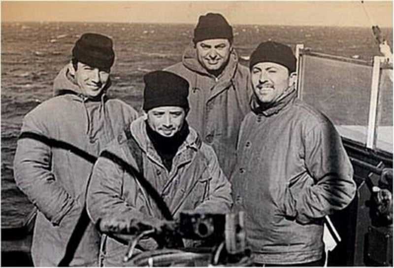 θάλασσα και μετά πάνω στο πλοίο. Κατεβάζει την τετράκωπη βάρκα του πλοίου με λέμβαρχο ένα Σημαιοφόρο, τον Γιώργο Καλλιγιάνη –αλήθεια, πόσοι Κυβερνήτες θα έδειχναν τέτοια εμπιστοσύνη σε τόσο νεαρό αξιωματικό και στο πλήρωμά του;– μέσα στην αντάρα τεράστιων κυμάτων, μαζί με τον Υποκελευστή Μηχανικό Οικονομάκη και τον