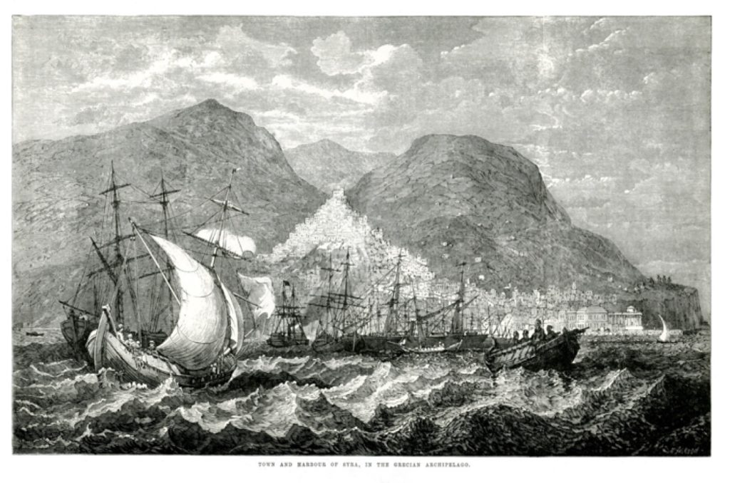Η Ερμούπολη εκείνα τα χρόνια βρισκόταν σε μια πολιτιστική, εμπορική και ναυπηγική ακμή, λειτουργώντας ως κέντρο ανεφοδιασμού που ενίσχυε τον αγώνα των επαναστατημένων, για μια ακόμη φορά, Κρητικών, με τρόφιμα και πολεμοφόδια, και το σημαντικότερο, με πλοία της Συριανής «ΕΛΛΗΝΙΚΗΣ ΑΤΜΟΠΛΟΪΑΣ», που είχε ιδρυθεί πριν από δύο πενταετίες.