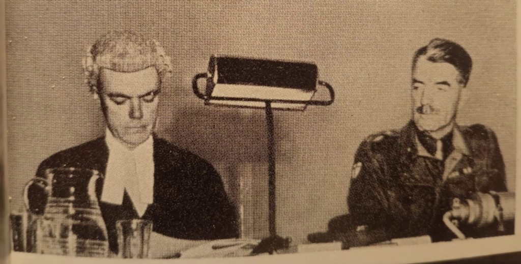 Πέντε Βρετανοί αξιωματικοί (3 του στρατού και 2 του Βασιλικού Ναυτικού), ο Βρετανός δικαστής της στρατιωτικής δικαιοσύνης Melford Stevenson και δύο Έλληνες αξιωματικοί του Βασιλικού Ναυτικού, ο Πλοίαρχος Εμμανουήλ Ματθαίος και ο Πλωτάρχης Νικόλαος Σαρρής, με Πρόεδρο τον Ταξίαρχο Jones. Οι Έλληνες δικαστές, ο Πλοίαρχος Εμμανουήλ Ματθαίος στη διάρκεια του Β’ ΠΠ μεταξύ άλλων είχε αναλάβει με ιδιαίτερη επιτυχία την αντιναρκική άμυνα του Ναυστάθμου Σαλαμίνας και του λιμανιού του Πειραιά, στη Μ. Ανατολή ήταν ιδρυτής και διοικητής της ΕΜΑΝ ενώ πολέμησε ως κομάντο με τον Ιερό Λόχο στη Β. Αφρική. Ο Πλωτάρχης Νικόλαος Σαρρής διετέλεσε Κυβερνήτης του Αντιτορπιλικού Θεμιστοκλής με το οποίο έλαβε μέρος σε επιχειρήσεις στα Δωδεκάνησα και τη Νότια Γαλλία και απελευθέρωσε τα Κύθηρα. Κατήγορος ο Βρετανός Συνταγματάρχης Halse