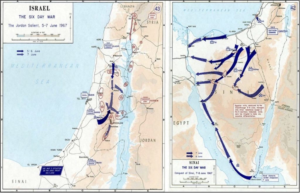 Πριν τον πόλεμο των Έξι Ημερών η περιοχή ανήκε στην Συρία, η οποία και είχε στρατιωτικό πλεονέκτημα έναντι του Ισραήλ, δημιουργώντας συνεχώς προβλήματα στους εκεί εβραϊκούς οικισμούς. Οι Συριακές Ένοπλες Δυνάμεις (ΣΕΔ) είχαν μετατρέψει τον ορεινό όγκο σε μια εξαιρετικά οχυρή θέση με υπόγεια καταφύγια, πυροβολεία και θέσεις αρμάτων μάχης. Κατά τις επιχειρήσεις στο Σινά και παρά τις πομπώδεις ανακοινώσεις η Συριακή κυβέρνηση είχε επιδείξει προσεκτική αυτοσυγκράτηση αποφεύγοντας επιμελώς την γενική εμπλοκή με το Ισραήλ. Οι Σύριοι προσπάθησαν με μονάδες ειδικών δυνάμεων να διεισδύσουν στο Ισραήλ αλλά χωρίς επιτυχία περιορίζοντας τελικά τις ενέργειες τους σε σποραδικά πυρά πυροβολικού. Η διάταξη δυνάμεων στα υψίπεδα του Γκολάν ήταν σαφώς υπέρ των Σύριων καθώς η Βόρεια Διοίκηση του Ισραηλινού Στρατού είχε υπό την ευθύνη της και τα σύνορα με την Ιορδανία και τον Λίβανο, ενώ όλη η προσοχή είχε στραφεί στο νότιο μέτωπο του Σινά. Επιπρόσθετα, μια επίθεση εναντίον της Συρίας πιθανόν να προκαλούσε την στρατιωτική επέμβαση της ΕΣΣΔ πράγμα που έκανε τους ισραηλινούς ακόμα πιο διστακτικούς παρά την πίεση της κοινής γνώμης. Τελικά, η εντολή για επίθεση δόθηκε μόνο όταν έγινε ξεκάθαρη η νίκη των ισραηλινών όπλων στο Σινά και την Δυτική Όχθη στις 9 Ιουνίου 1967 ακριβώς μία μέρα μετά την προσβολή του USS Liberty και συνεπώς την αδυναμία των ΗΠΑ να γνωρίζουν λεπτομερώς, και συνεπώς να ελέγχουν, τις κινήσεις των Ισραηλινών. Με γρήγορη και δυναμική κίνηση τεθωρακισμένων και ειδικών δυνάμεων υπό την συνεχή κάλυψη της ισραηλινής πολεμικής αεροπορίας και αυτή η επίθεση ήταν επιτυχής. Το Σάββατο 10 Ιουνίου το απόγευμα τέθηκε σε ισχύ από τον ΟΗΕ η κατάπαυση του πυρός αφού όμως οι Ισραηλινοί αψηφώντας κάθε προειδοποίηση είχαν ισχυροποιήσει τις θέσεις τους. Τα υψίπεδα του Γκολάν πέρασαν οριστικά στην Ισραηλινή πλευρά όπου και παραμένουν ως σήμερα11Η σημασία αυτού του ορεινού όγκου για την ασφάλεια του Ισραήλ είναι εύκολο να γίνει αντιληπτή απλά και μόνο εξετάζοντας την γεωγραφία της περιοχής και την μορφολογία του υψιπέδου. Με υψόμετρο που φθάνει τα 180 μέτρα από την κοιλάδα Γιαρμούκ στο νότο και 2800 μέτρα από το Όρος Ερμών, αποτελεί μια ογκώδη ηφαιστειακή ορεινή επιφάνεια η οποία δεσπόζει πάνω από την Θάλασσα της Γαλιλαίας, πάνω από τις ορεινές κοιλάδες του Λιβάνου αλλά κυρίως πάνω από την πεδιάδα της Δαμασκού. Μέσω της κατάλληλης αξιοποίησης και εξοπλισμού της θέσης με συστήματα ηλεκτρονικού πολέμου είναι δυνατός ο έλεγχος του Λιβάνου, της Συρίας και της Ιορδανίας.